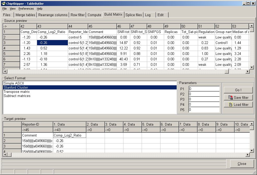 Instead of Stanford expressionmatrices you can also create any kind of combined data file, extracting the same columns out of all selected source datafiles saving them into one combined table: