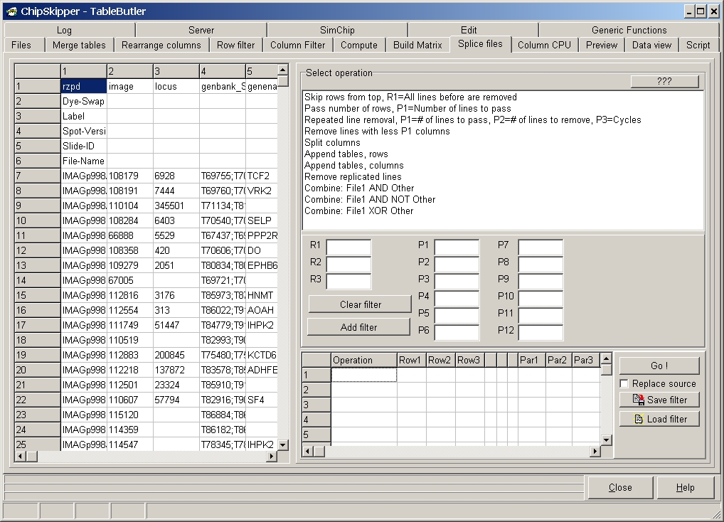 Here you find functions to combine or cut data files into pieces.